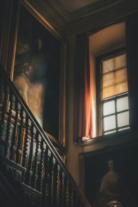 The air was cold — colder than outside — and had that stillness you only feel in vacant homes. We made it through the main floor fine, admiring the antique details and slightly creaky floors. But then we reached the basement.